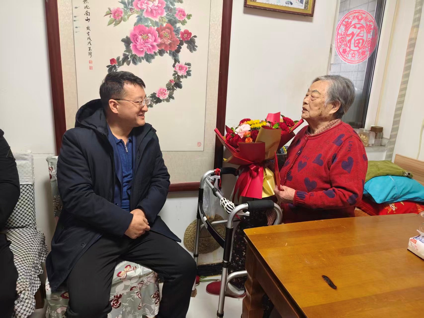 孟新一行走進產(chǎn)發(fā)實業(yè)集團離退休老干部李尚琴家中,與老人促膝談心、親切交流,詳細詢問其生活起居、身體狀態(tài),悉心叮囑老人冬季注意防寒保暖,保持樂觀心態(tài),安心安享晚年。作為擁有65年黨齡的老黨員,李尚琴已88歲高齡,但仍精神矍鑠。自參加工作以來,她始終愛崗敬業(yè)、勤勉務(wù)實,為企業(yè)發(fā)展作出了重要貢獻。談及日常起居時,老人分享了自己每日讀書看報的習慣,言語間滿是對集團的牽掛:“我一直密切關(guān)注著產(chǎn)發(fā)集團的發(fā)展,看到集團近年來在產(chǎn)業(yè)投資、園區(qū)建設(shè)等領(lǐng)域捷報頻傳,我打心底里感到自豪,也堅信集團能越來越好!”孟新認真傾聽了老人的心聲與建議,對她數(shù)十年如一日為黨和國家事業(yè)、為集團發(fā)展作出的貢獻表示崇高敬意。他指出,老黨員是集團發(fā)展的寶貴財富,集團的改革創(chuàng)新與高質(zhì)量發(fā)展離不開一代代老同志們的辛勤付出與無私奉獻,他們身上的優(yōu)良作風與責任擔當,是激勵全體產(chǎn)發(fā)人砥礪前行的精神動力。